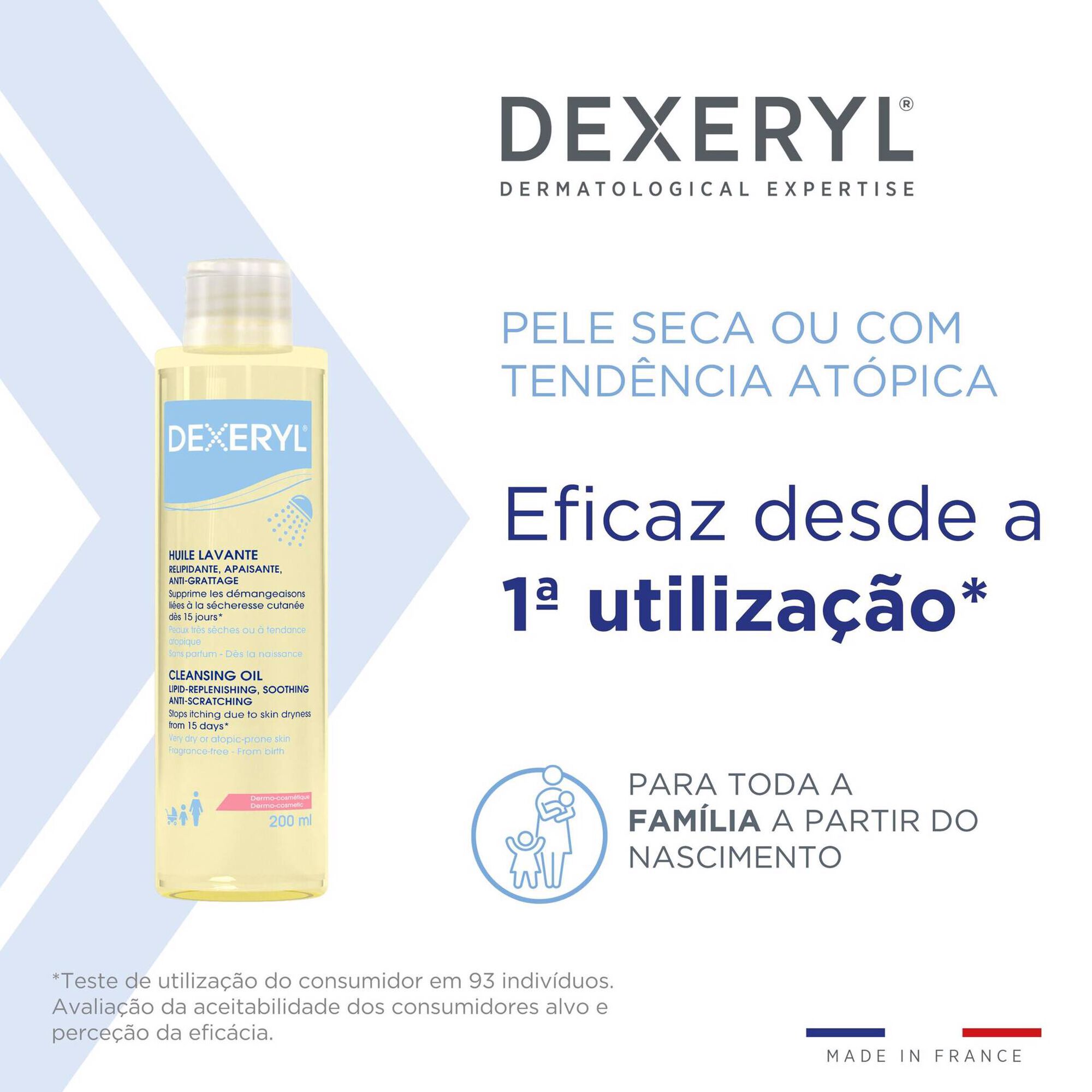 Dexeryl Óleo de Duche foi especialmente concebido para limpar, acalmar e nutrir suavemente a pele seca, muito seca ou com tendência atópica, preservando simultaneamente a barreira cutânea.