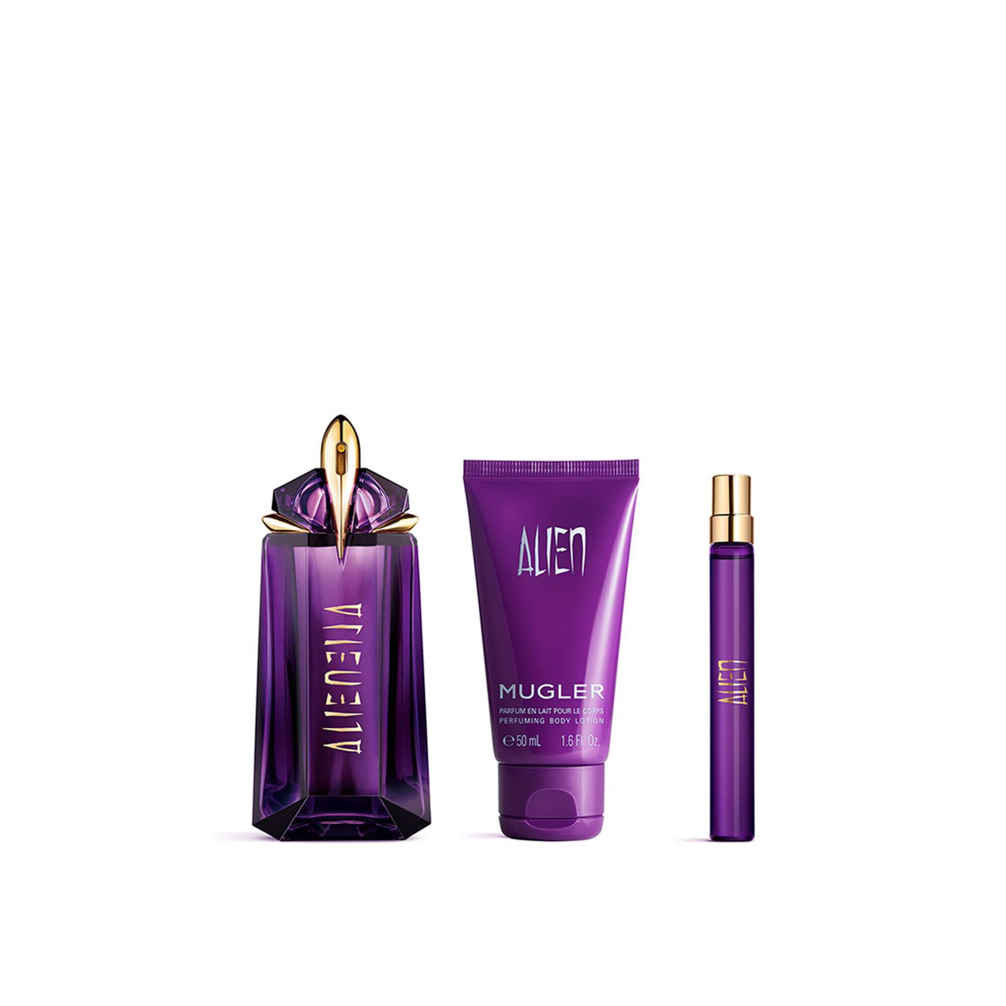 Explora o universo envolvente de Mugler com o Coffret de Natal Alien, uma edição especial que celebra a intensidade e o mistério femininos. Este coffret exclusivo contém a Eau de Parfum Alien em formato de 90 ml, a sua versão em tamanho de viagem de 10 ml e o Creme Corporal perfumado de 50 ml.