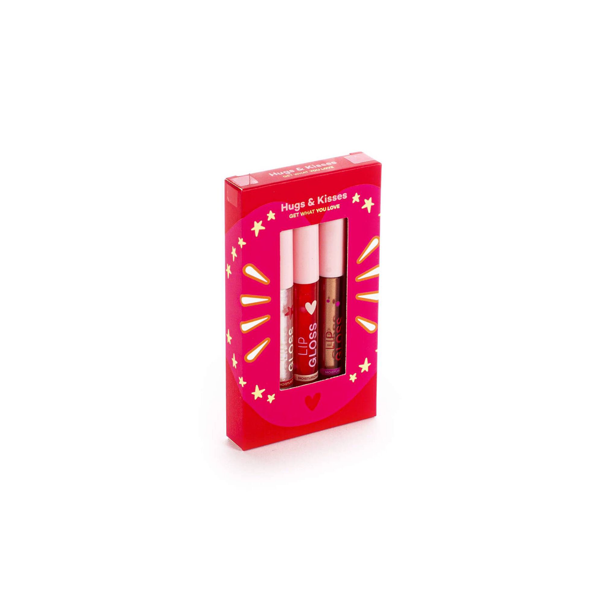 Cada lip gloss tem uma divertida combinação de cor e fragrância, e este conjunto inclui: Lip Gloss Transparente (2.5mL), Lip Gloss Rosa Claro com brilhos (2.5mL) e Lip Gloss Vermelho com brilhos (2.5mL)