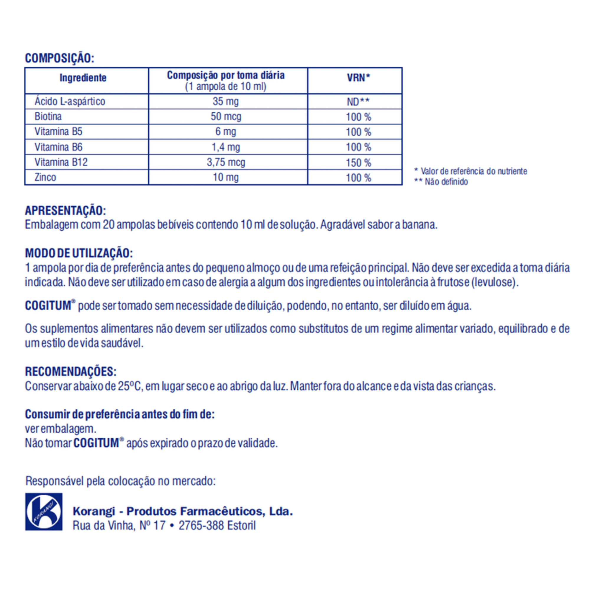 Cada ampola bebível de 10 ml contém 175 mg de ácido N-acetilaminosuccínico* (sal de potássio a 250 mg), 1000mg de levulose*, 15mg de para-hidroxibenzoato de metilo*, 7 mg de aroma de banana* e 10 ml de água purificada q.b.p. .