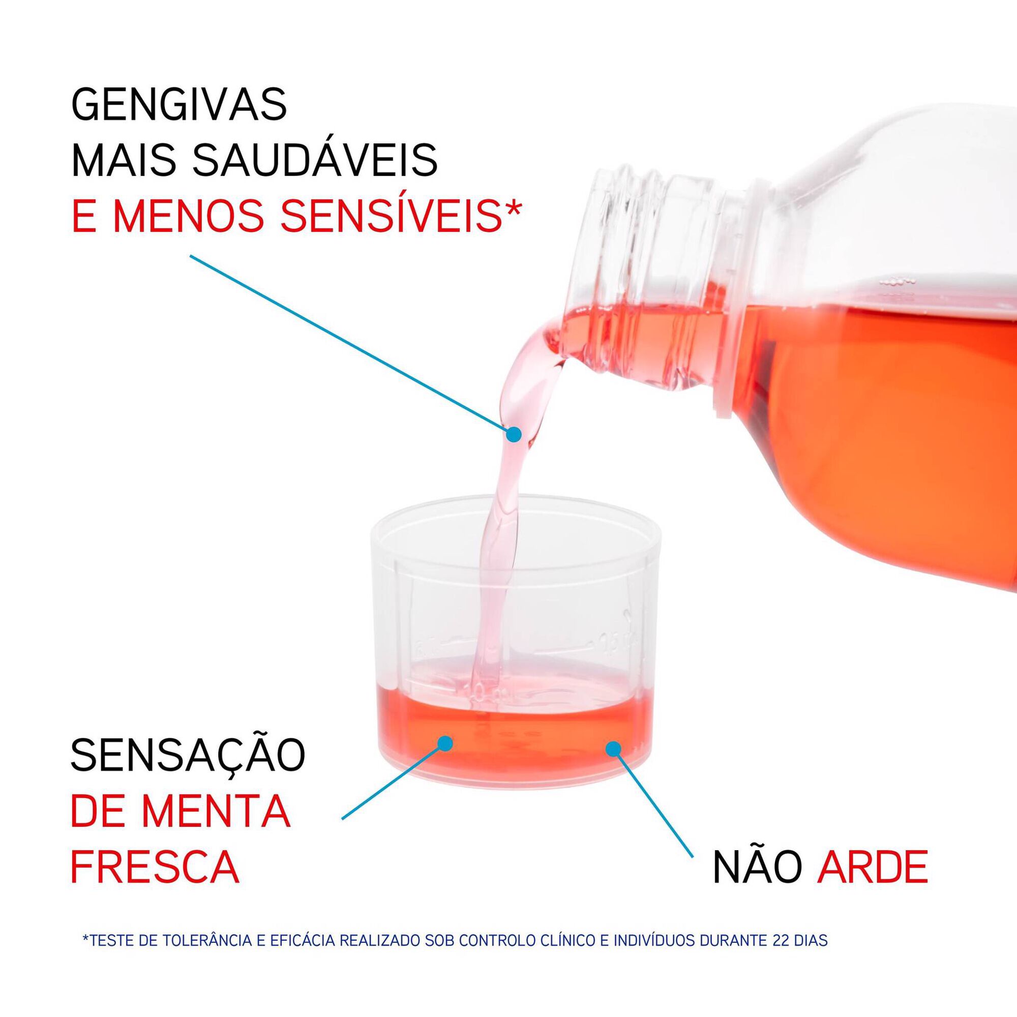 Duas vezes por dia, após a escovagem dos dentes, bochechar com 15 ml durante 30 segundos.