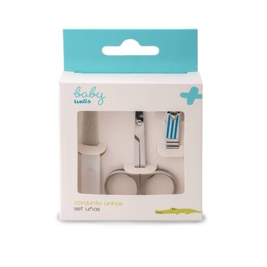 Conjunto Higiene de Unhas que inclui corta-unhas, tesoura e lima para uso na higiene do bebé.