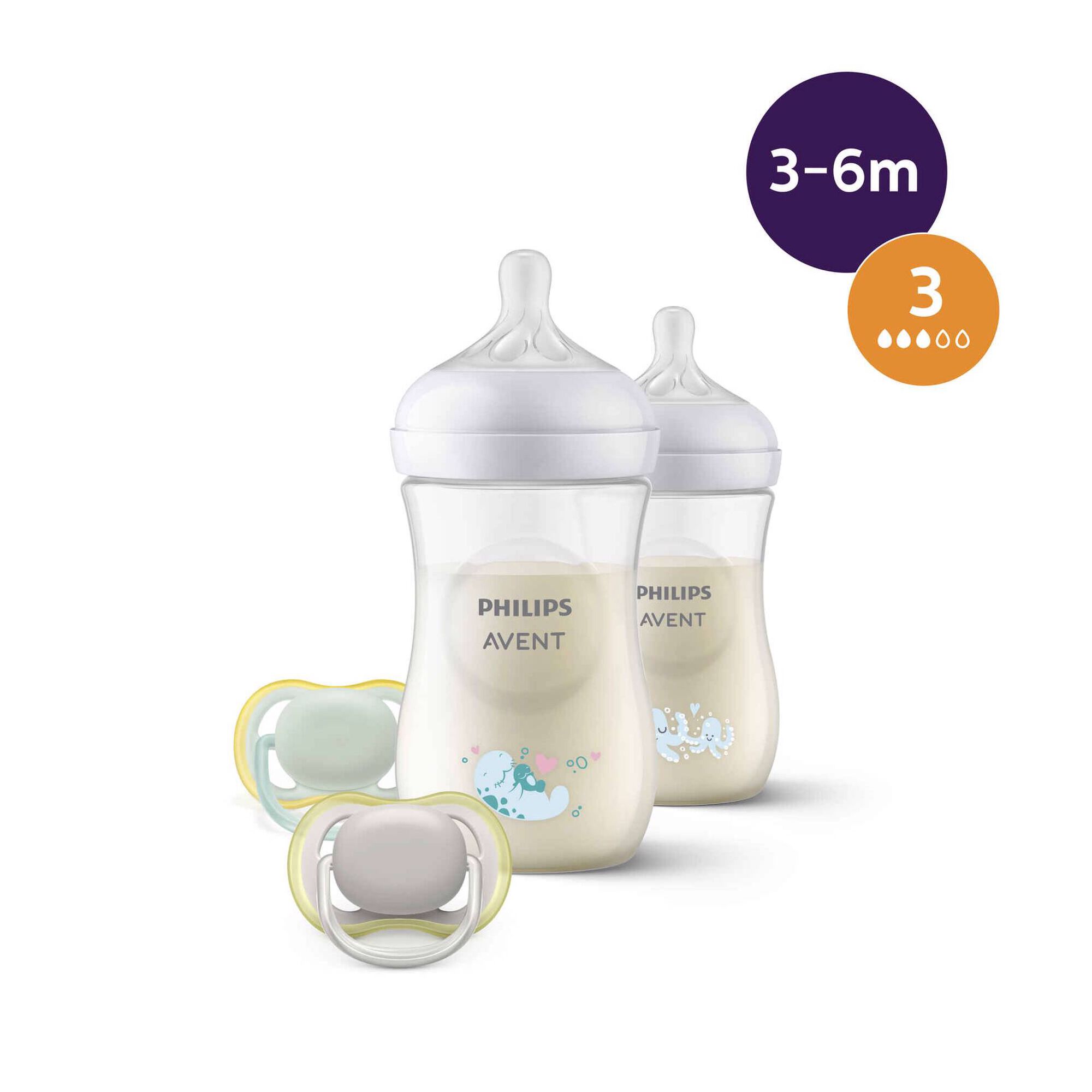 O conjunto para recém-nascidos é o início perfeito para alimentar e acalmar. Com a tetina Natural Response os bebés podem beber ao seu próprio ritmo, como no peito, tornando mais fácil combinar a amamentação e a alimentação com biberão.