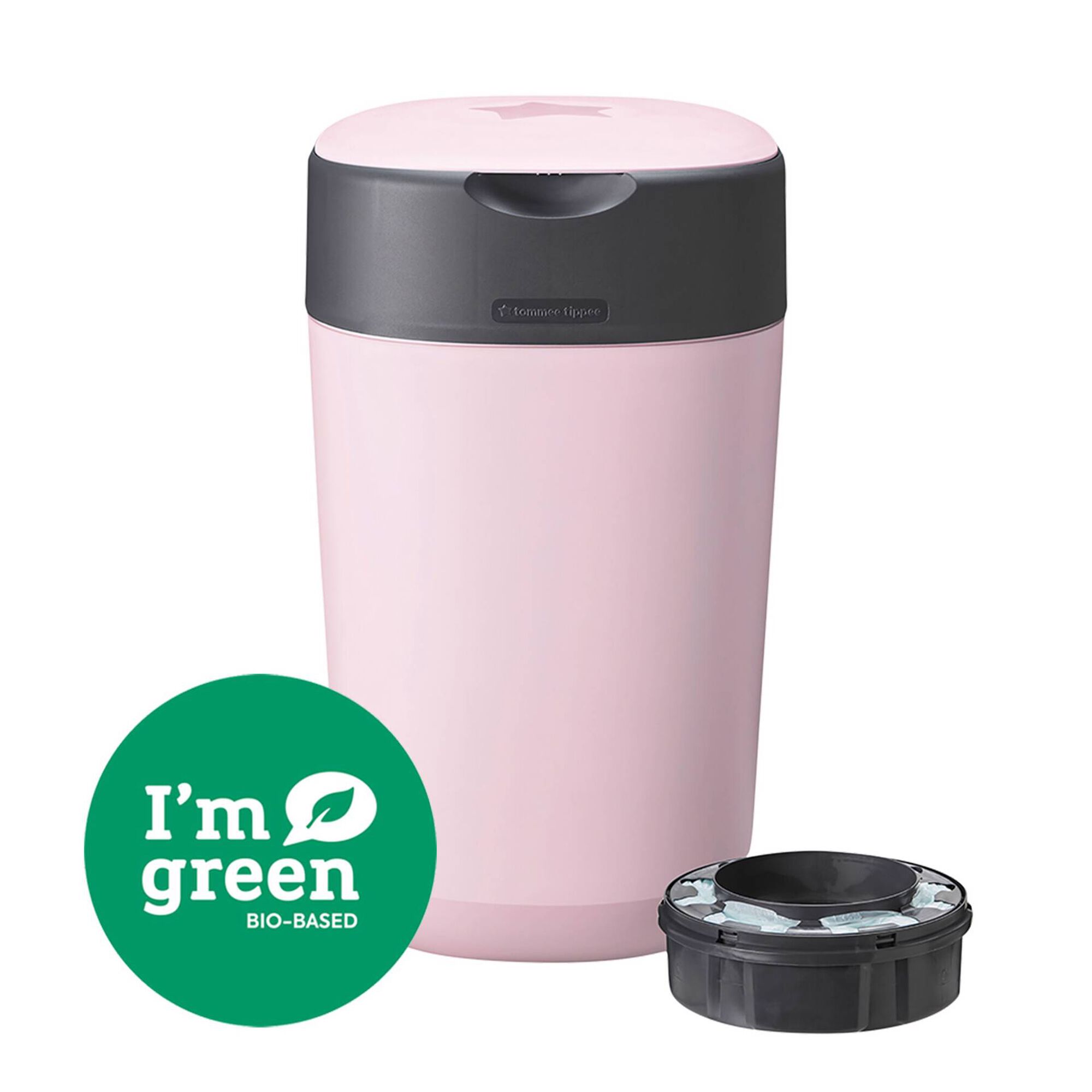 O contentor Twist & Click de Tommee Tippee utiliza a tecnologia de Sangenic para isolar as fraldas usadas de forma simples, rápida, simples e segura, proporcionando uma proteção garantida contra o mau cheiro e os gérmes. Agora, além do mais, é mais ecológico, já que tanto o contentor como as recargas estão fabricadas com um 98% de plástico reciclado e totalmente reciclável, e a película de multicamadas antibacteriana GREENFILM está fabricada de cana de açúcar de origem sustentável.