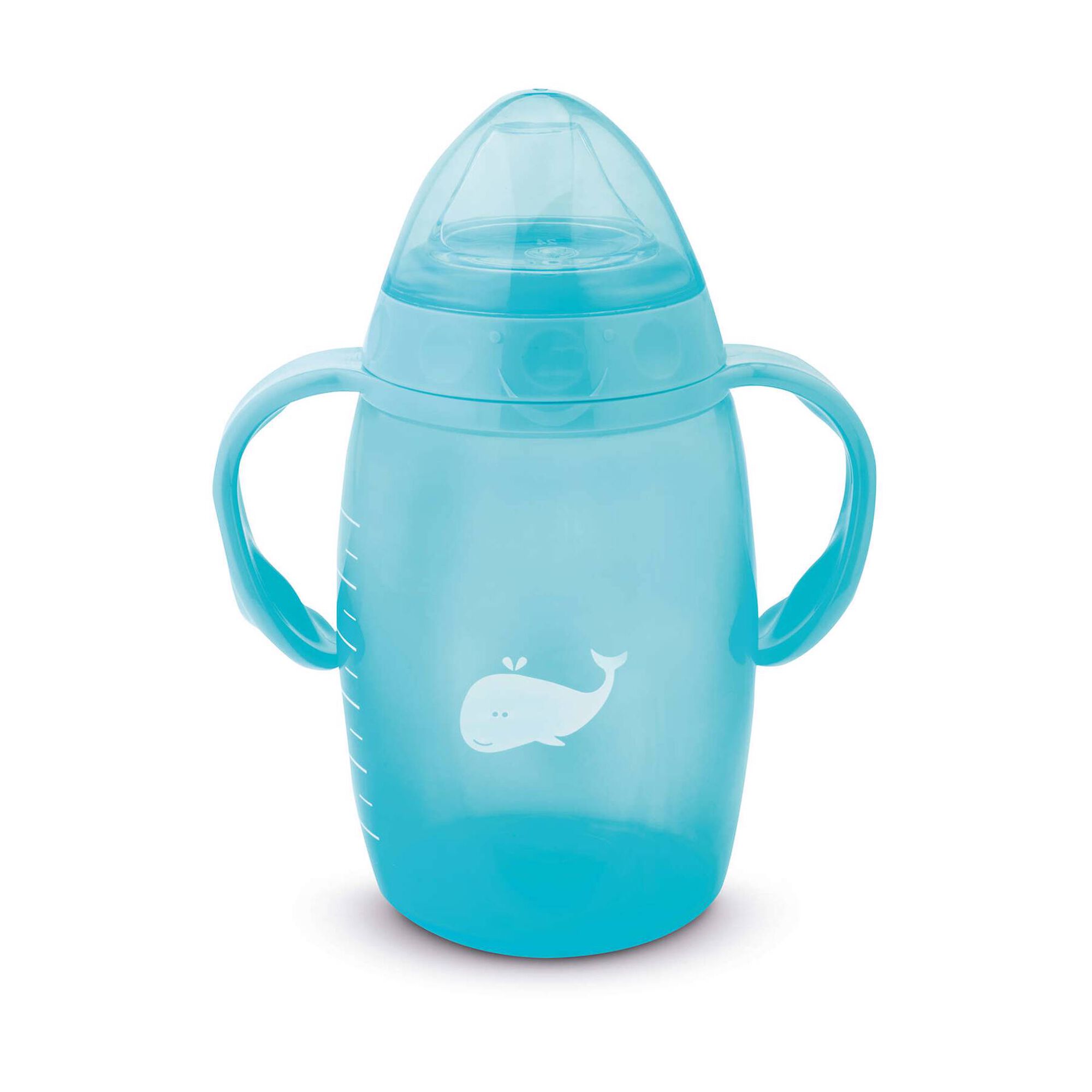 Composto por um bico macio e por um sistema que não permite que a bebida verta, ajuda a que o bebé consiga beber de forma autónoma e segurar o copo facilmente, graças às suas pegas laterais.