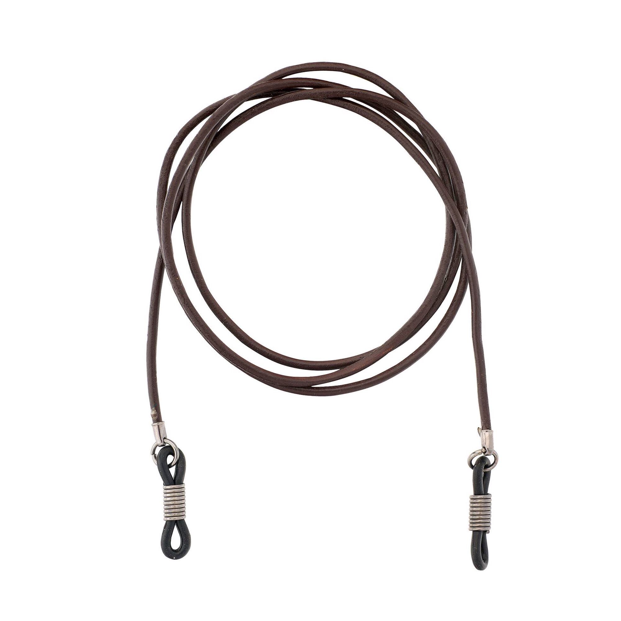Cordão para óculos em pele castanho da Well's com borrachas ajustáveis, resistentes e universais.