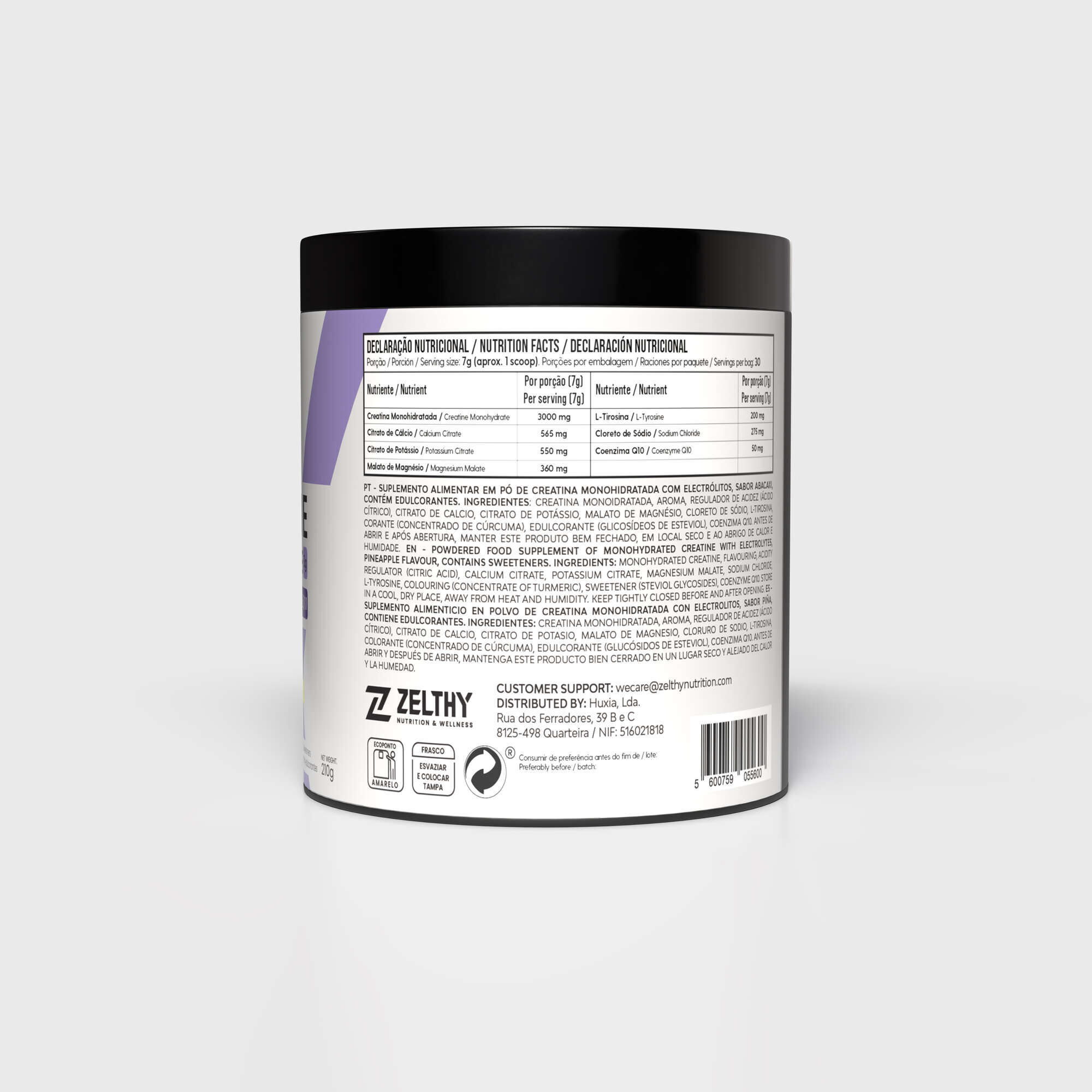 Cada porção fornece 3g de creatina monohidratada pura, o padrão ouro para o aumento de força e potência, juntamente com um complexo eletrolítico cuidadosamente balanceado para hidratação e recuperação ideais. A adição de coenzima Q10 oferece um poderoso suporte energético celular e proteção antioxidante, criando um efeito sinérgico que amplifica os benefícios de cada ingrediente individual.