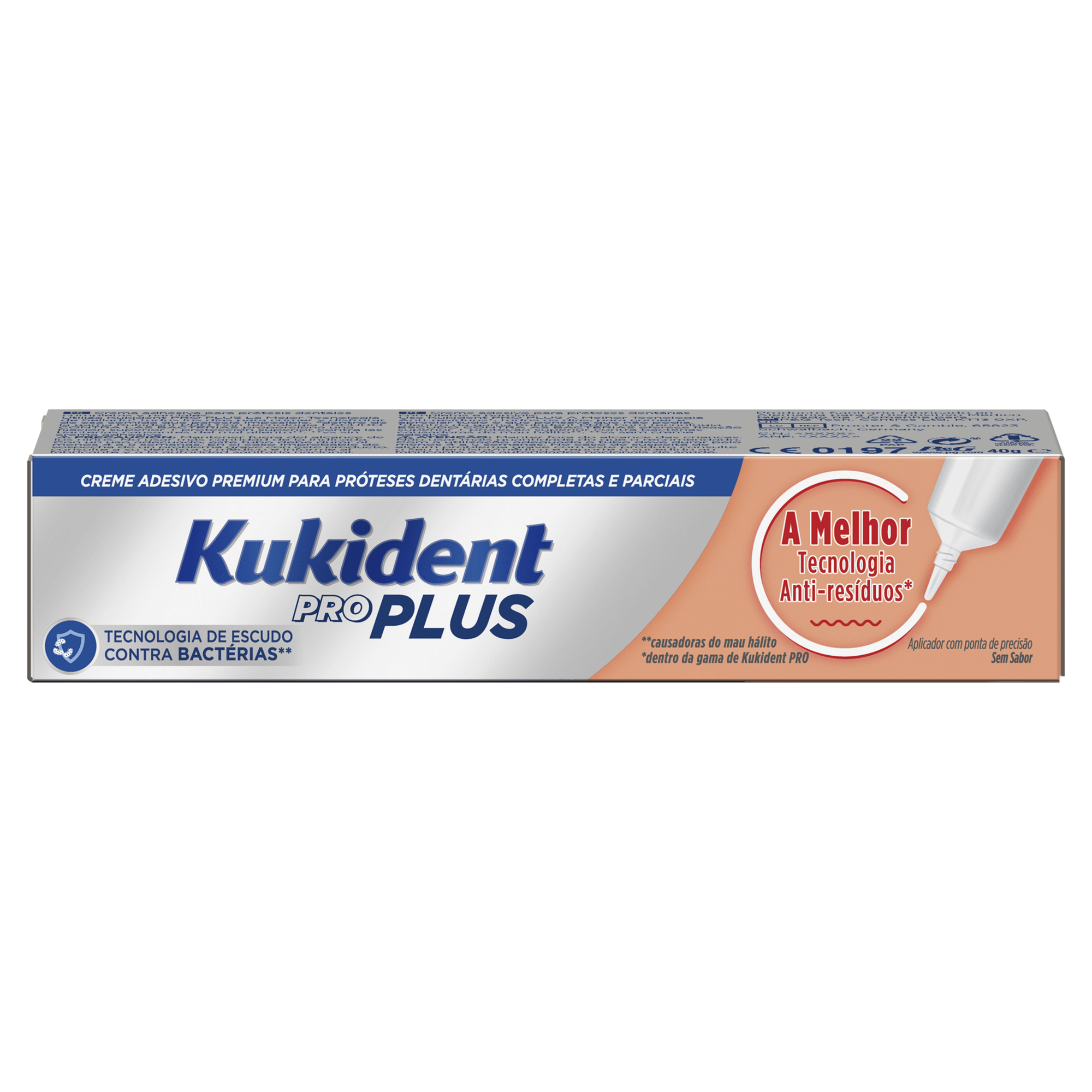 Kukident Pro Anti-resíduos é o creme adesivo para próteses dentárias Kukident que oferece a melhor proteção contra a infiltração das particulas dos alimentos. Com um sabor neutro para comer sem preocupações fixa 10 vezes mais forte, comparativamente à ausência de adesivo mantendo a prótese segura no seu lugar durante todo o dia. Para próteses completas e parciais.