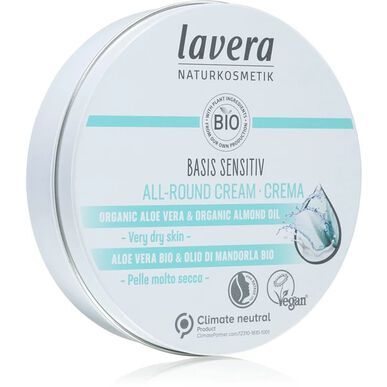 O Creme Basis Sensitiv All-Round hidrata a pele em profundidade, repara a pele seca, melhora a flexibilidade e a elasticidade, acalma a pele, refrescando-a.