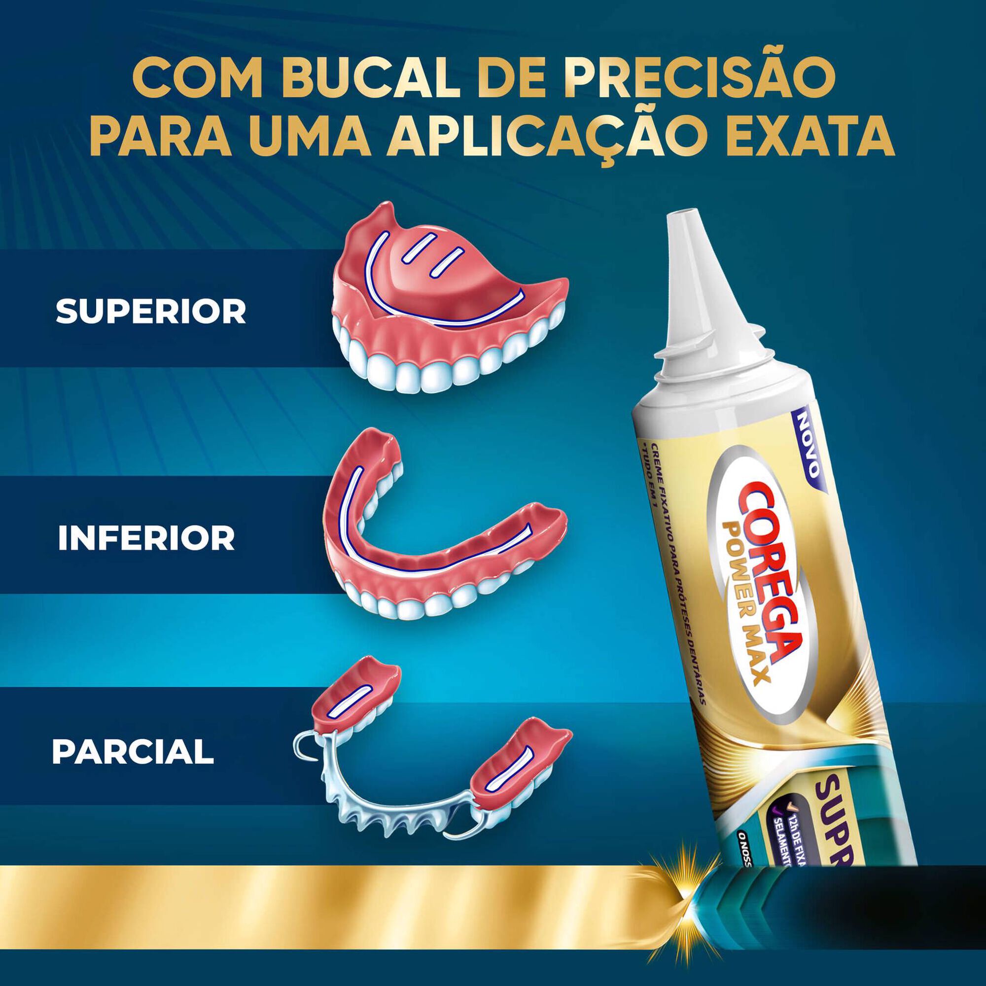 Para a primeira vez aplique uma pequena quantidade. Utilize mais se necessário. Aplicar demasiado creme fixativo pode fazer com que o produto transborde da prótese, se isto acontecer, aplique menos da próxima vez.