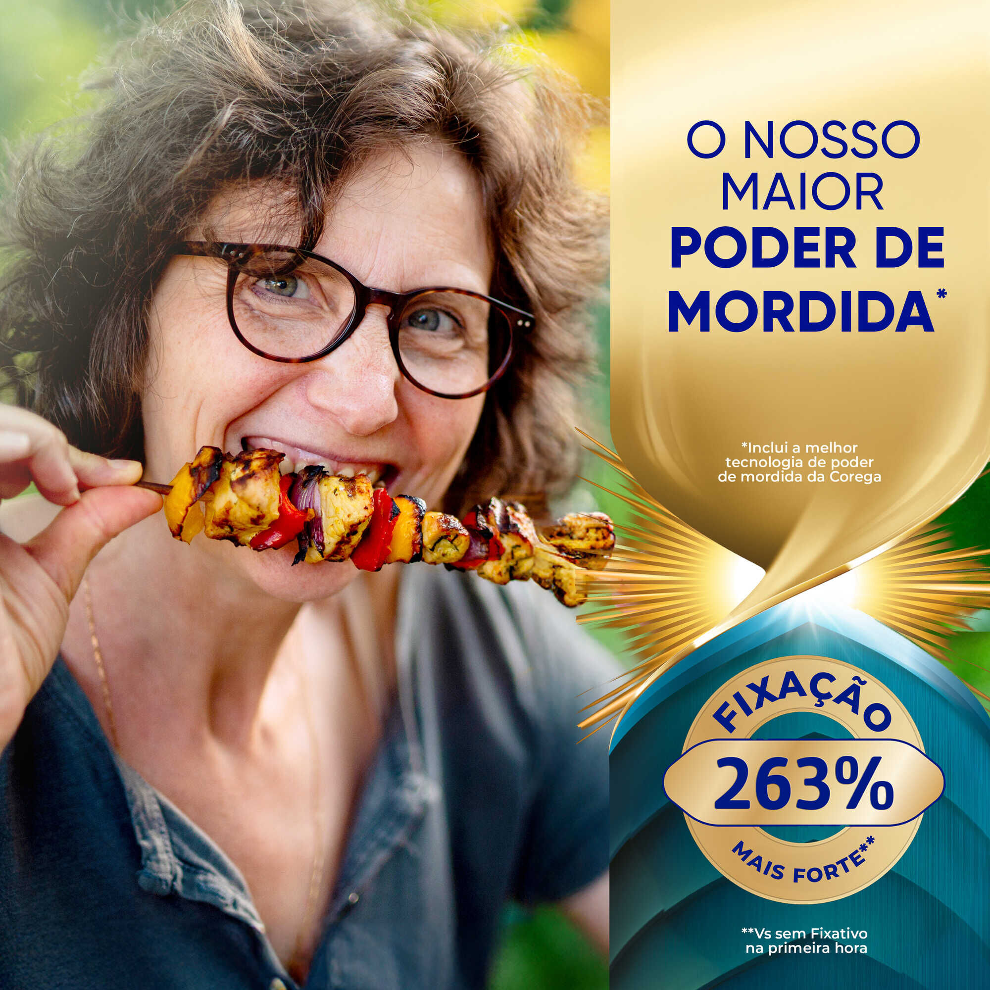 **Inclui a melhor tecnologia de poder de mordida da Corega