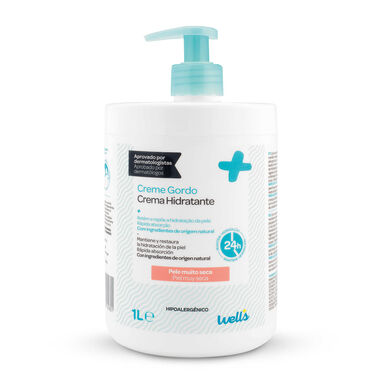 O Creme Gordo Hidratante Wells é recomendado para pele seca e, especialmente, muito seca.