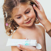 Aplique o creme na pele, massajando delicadamente a pele do rosto do bebé e da criança.