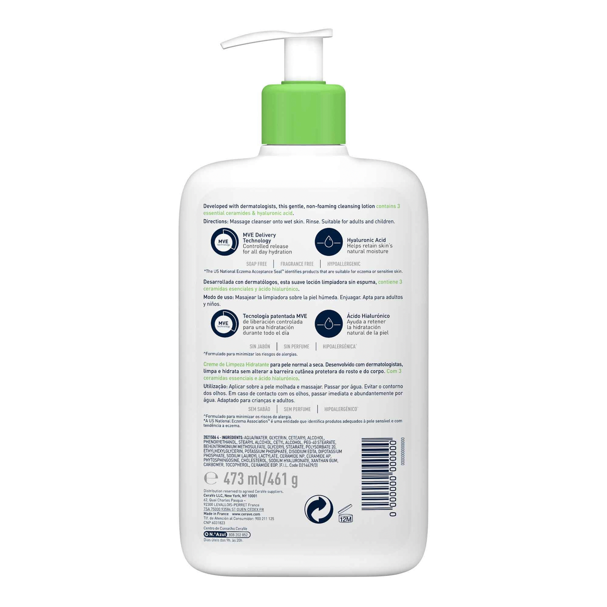 Contacto: CeraVe, 62, Quai Charles Pasqua – 92300 LEVALLOIS-PERRET France ; apoio.consumidor.pt@loreal.com