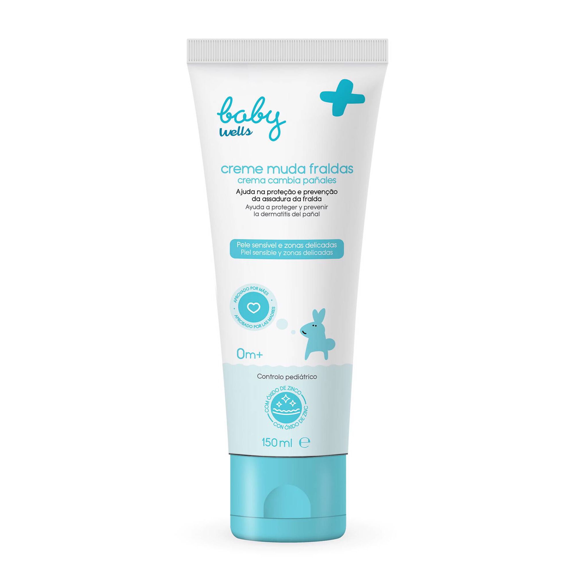 Dermatologicamente testado em peles sensíveis. 0m+. Recomendado por mães. Controlo pediátrico.