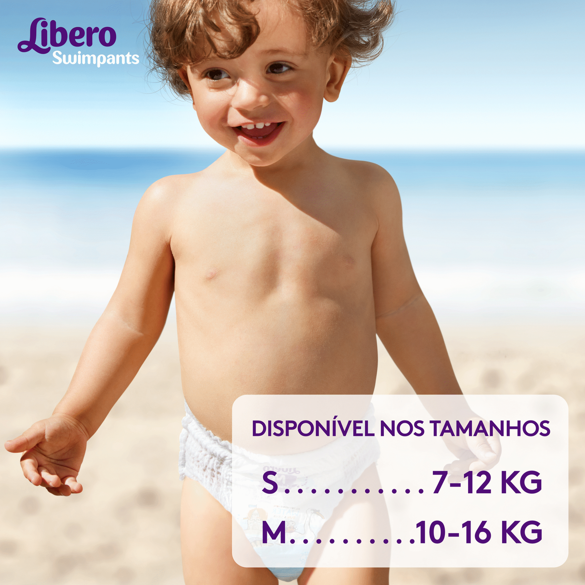 O tamanho S é adequado para crianças com peso entre 7 e 12 Kg, o tamanho M é adequado para crianças com peso entre 10 e 16 Kg.
