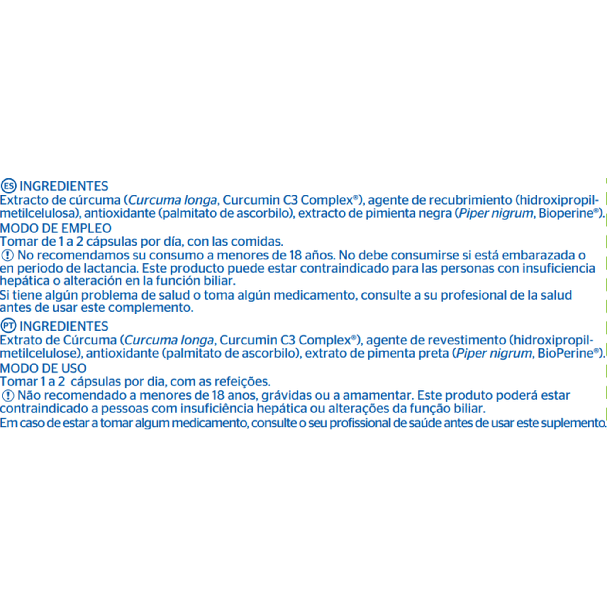 Para otimizar a absorção da curcumina pelo organismo, a fórmula inclui ainda o extrato de pimenta Bioperine®, que aumenta significativamente a biodisponibilidade deste composto ativo. Juntos, estes ingredientes potenciam os benefícios anti-inflamatórios e antioxidantes da curcuma, apoiando o bem-estar geral e a saúde celular.