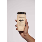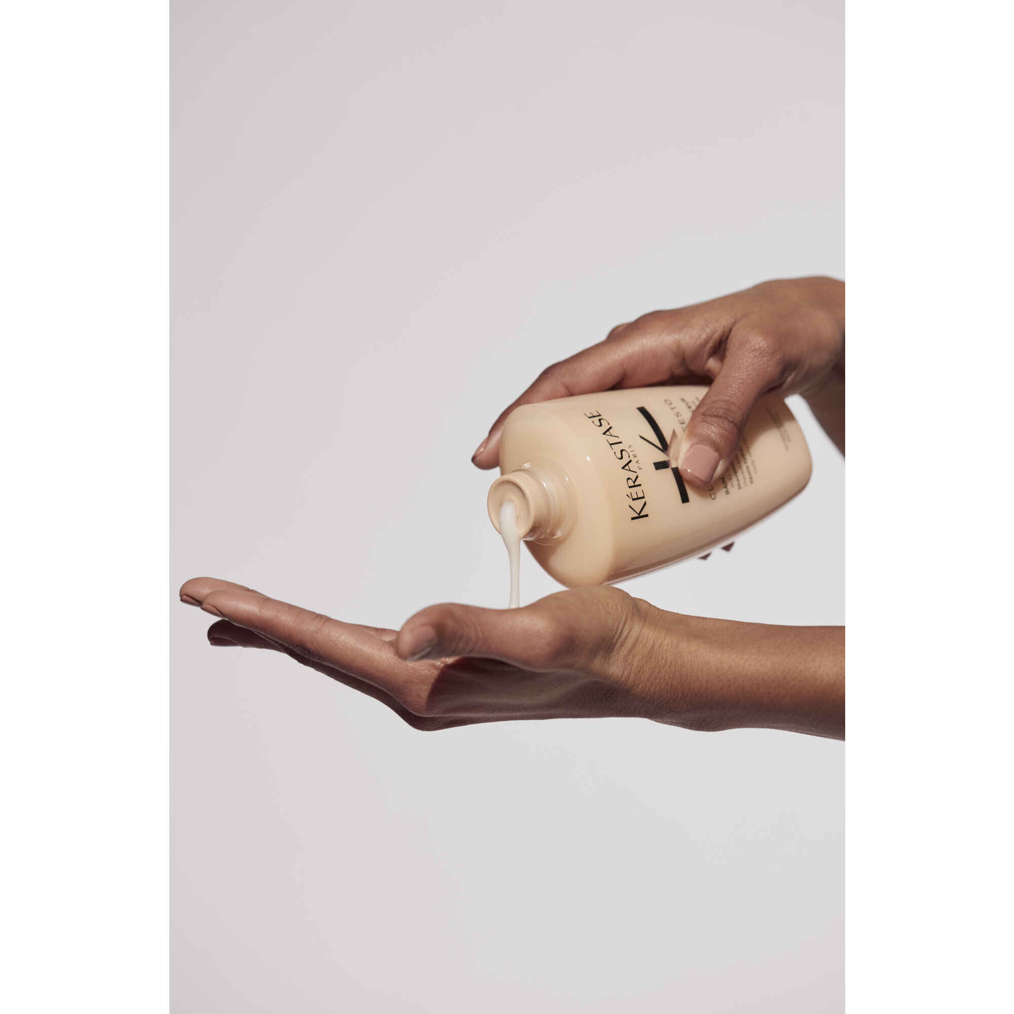 Aplicar nas mãos e distribuir homogeneamente pelo cabelo e couro cabeludo molhado. Depois massajar e passar por água. Reaplicar e deixar repousar durante 3 minutos. Massajar, emulsionar e passar por água morna.