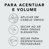 Vaporizar uniformemente no cabelo húmido ou seco para conferir mais suavidade e um brilho natural.