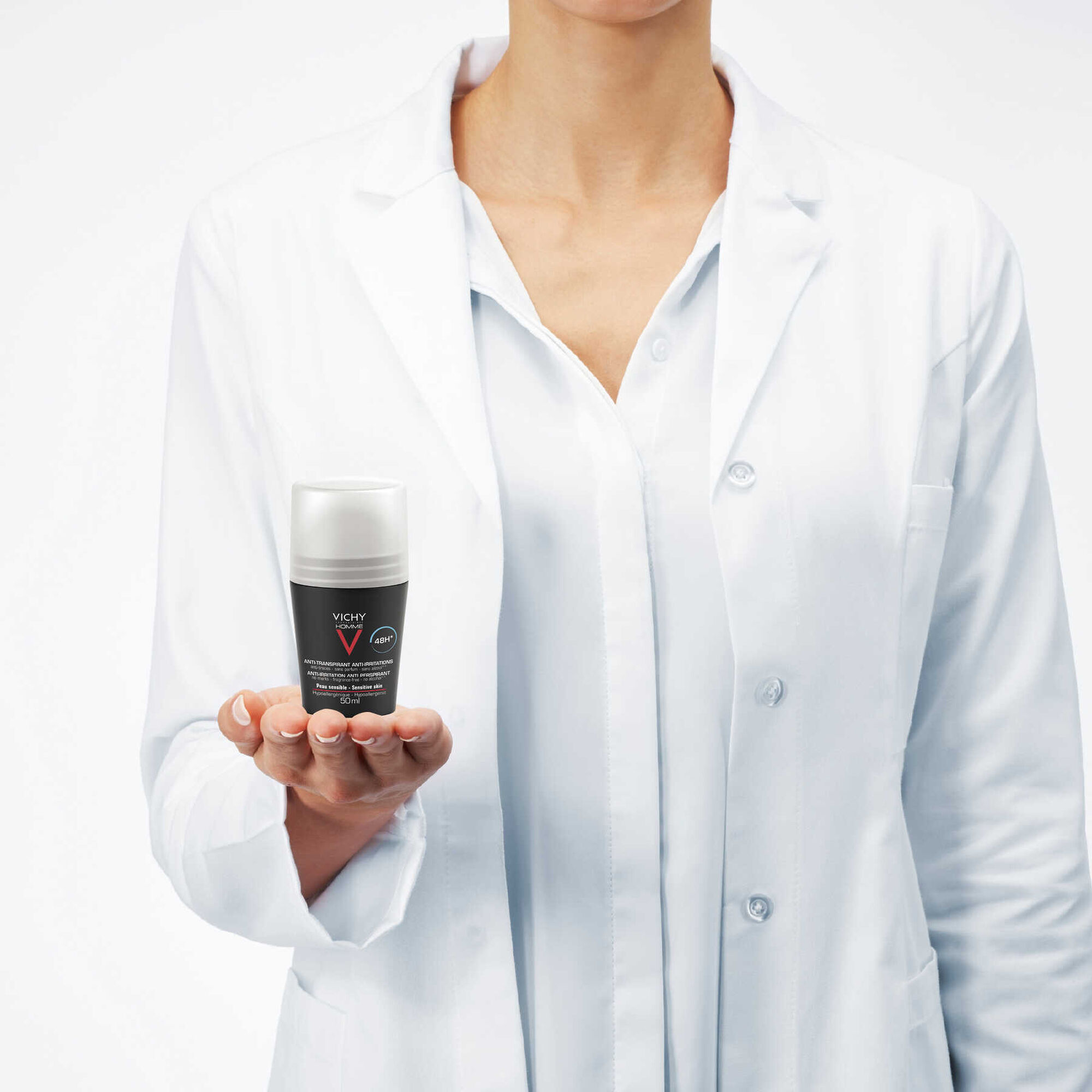 A fórmula de ativos antitranspirantes e óligo-zinco apaziguantes regula a transpiração e diminui os desconfortos da pele durante 48 horas. Eficácia desodorizante e antitranspirante durante 48 horas*. Fresco e suave ao aplicar. Tolerância óptima, não deixa marcas brancas na pele. *Teste instrumental.