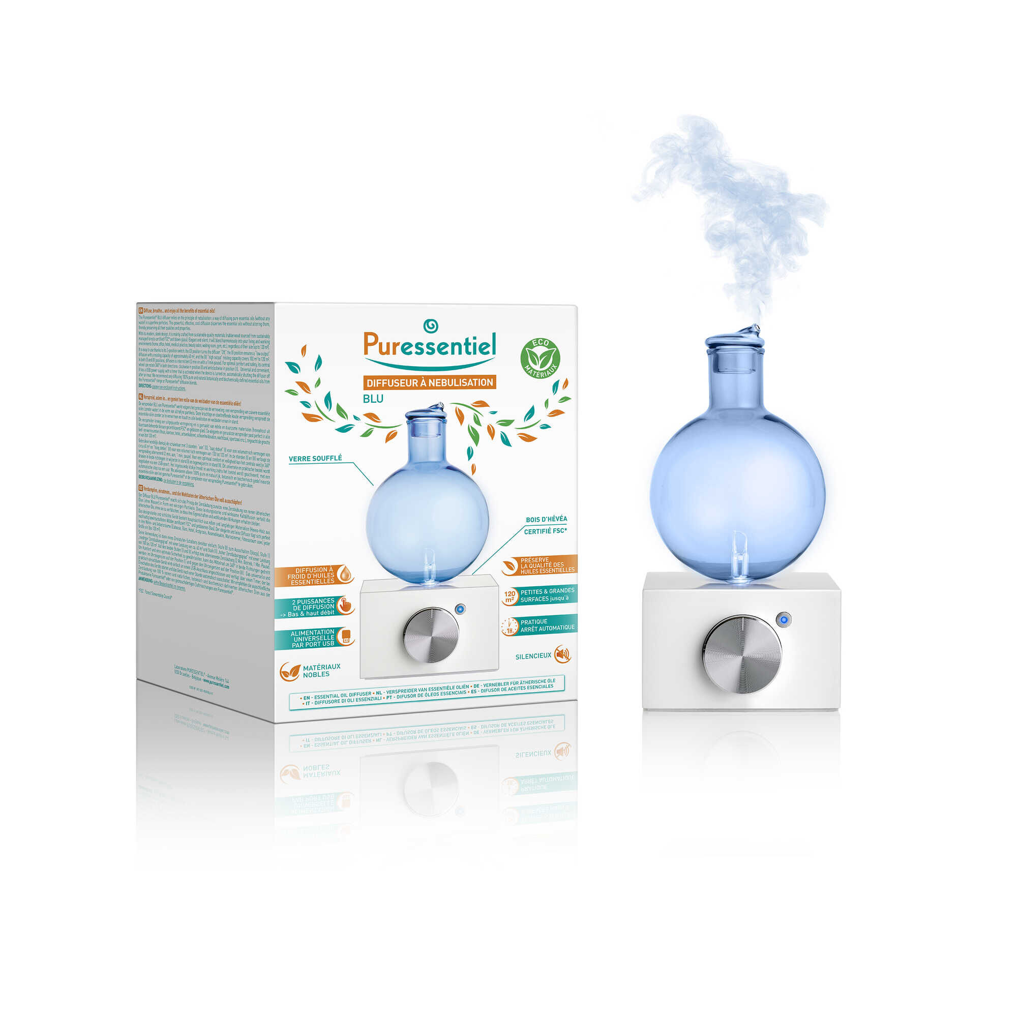 O difusor BLU Puressentiel® utiliza o princípio da nebulização: uma difusão de óleos essenciais puros (sem água) sob a forma de partículas muito finas. Esta difusão a frio, poderosa e eficaz, dispersa os óleos essenciais sem os desnaturar e deste modo preservando as suas qualidades e benefícios.