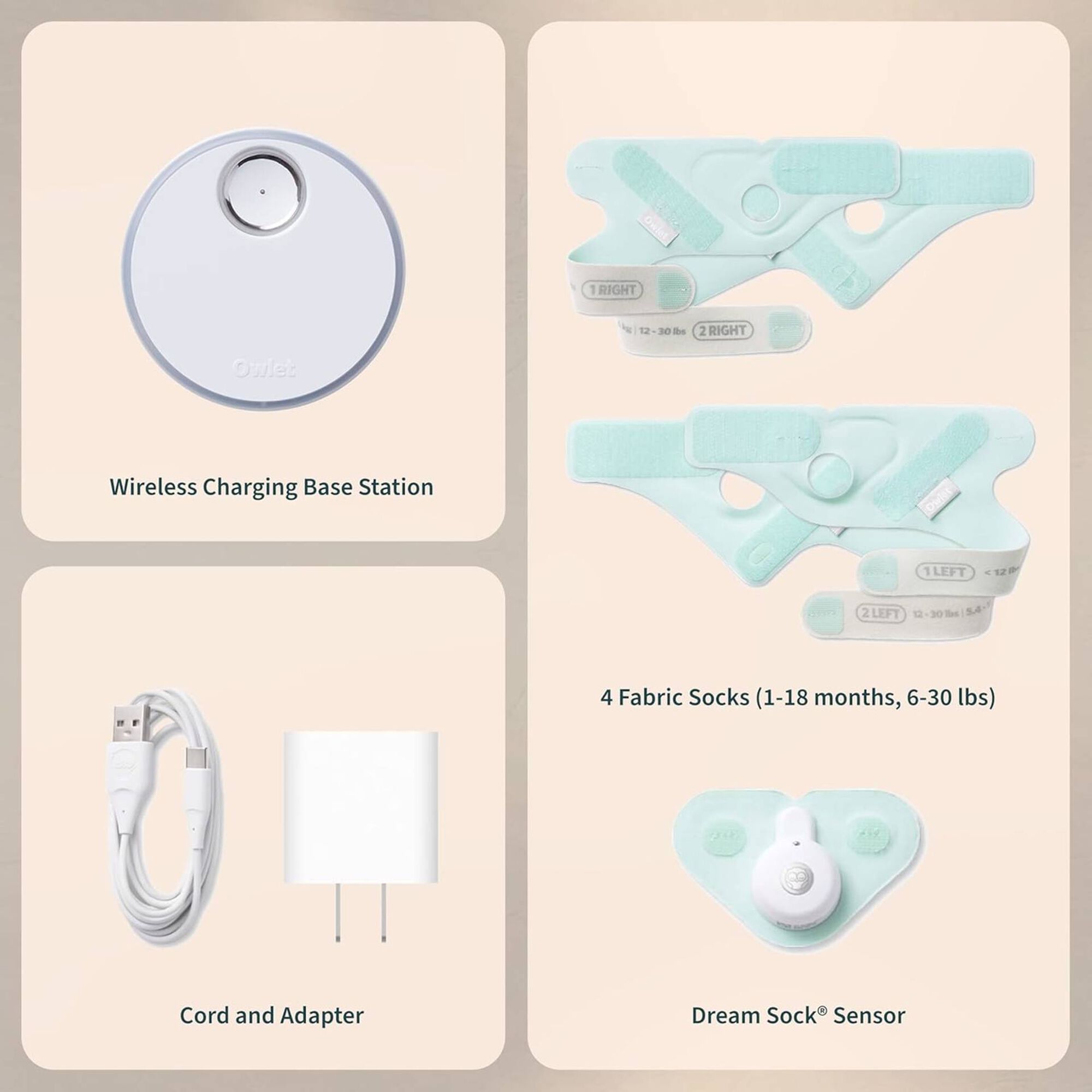 O monitor inteligente para bebés Owlet Dream SockTM oferece aos pais a máxima tranquilidade. Este pioneiro monitor para bebés com certificação médica envolve confortavelmente o pé do bebé, fornecendo monitorização em tempo real da pulsação, oxigénio, padrões de sono do bebé, etc.