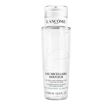 Água micelar Lancôme Douceur desmaquilha num só gesto o rosto e olhos, podendo ser utilizada por todos os tipos de pele.