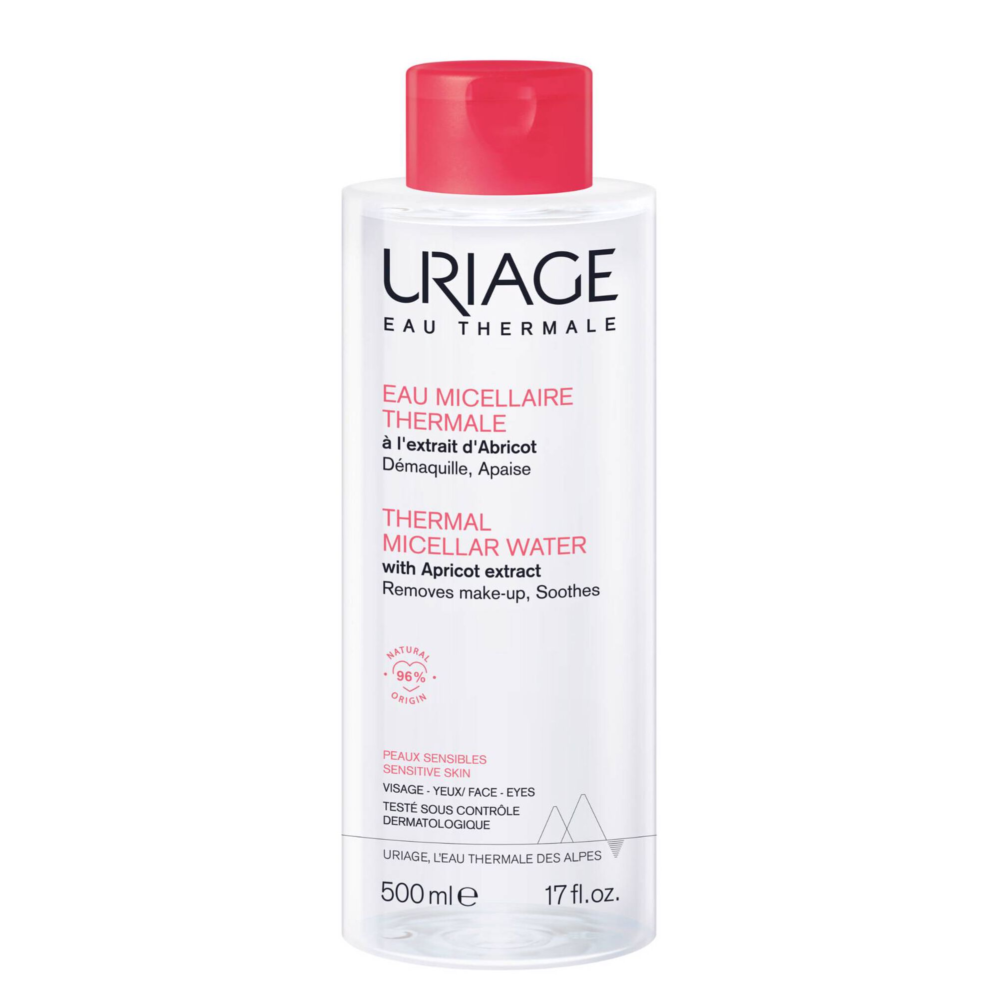 A Água Termal Micelar é ideal para remover a maquilhagem de todos os tipos de pele devido às propriedades únicas da Água Termal de Uriage, hidratante. Com tensioativos suaves não iónicos, que formam as micelas, removem eficazmente a maquilhagem e as impurezas. Enriquecida com extrato de Alperce, promove o conforto cutâneo. Testado oftalmologicamente.