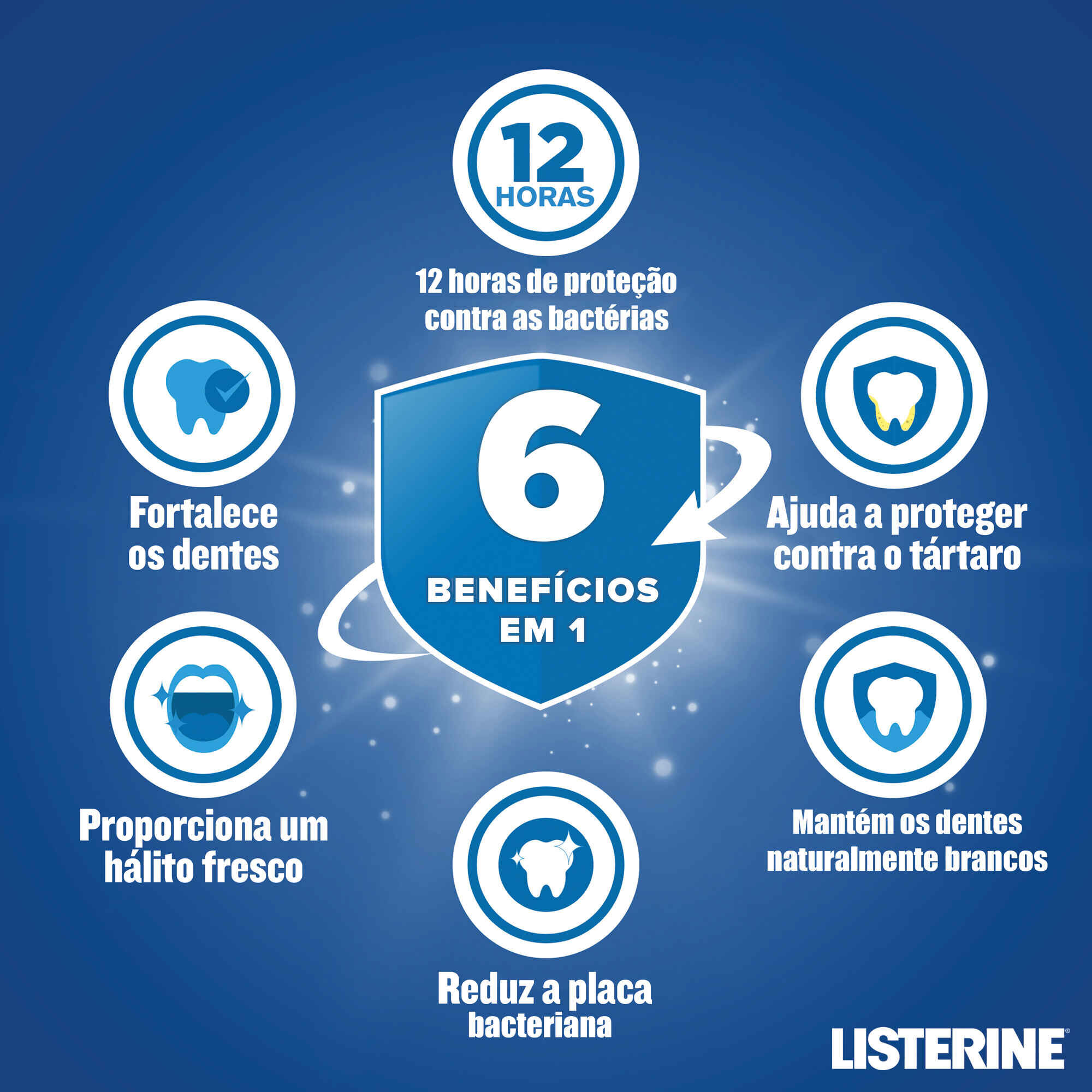 O Elixir Anti-Tártaro Menta Polar Advanced da Listerine é formulado para reduzir a placa bacteriana e prevenir a acumulação do tártaro ajudando a manter os dentes naturalmente brancos com uma sensação de limpeza 3 vezes mais prolongada.