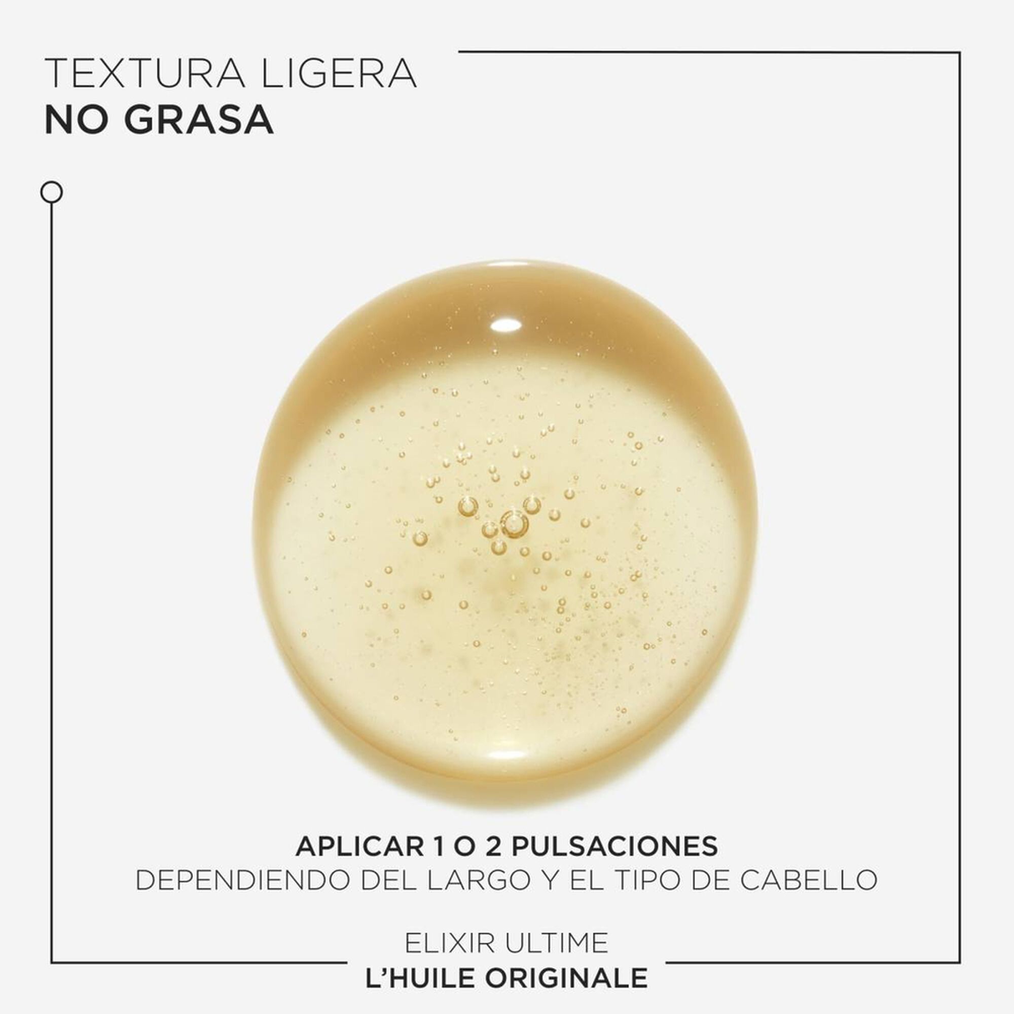 - RETOQUES: Aplicar uma gota nas pontas ao longo do dia para um toque de brilho, conforme necessário