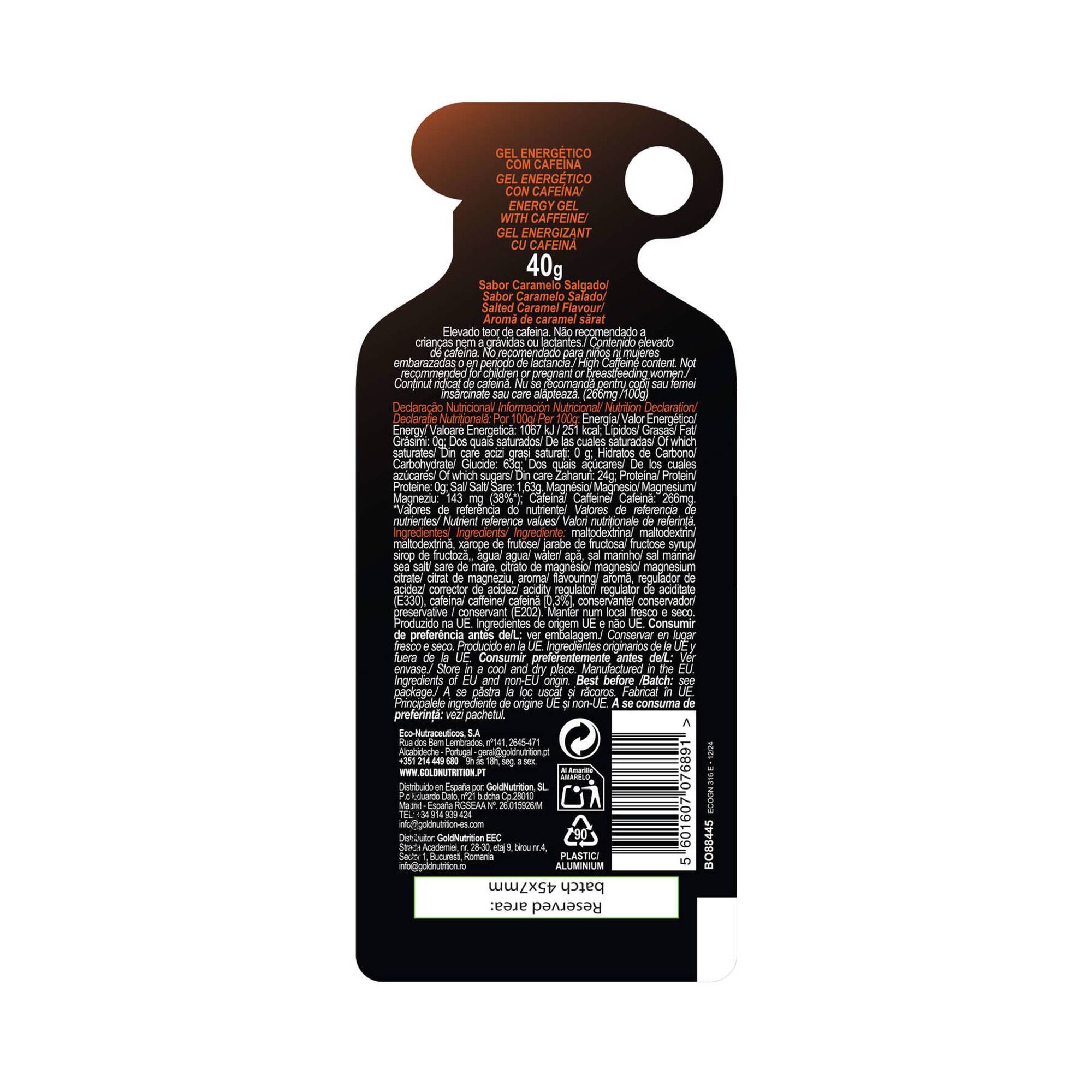 O Energy Gel Boost da GoldNutrition é um gel energético desenvolvido para fornecer energia imediata em momentos de esforço intenso. Combina um elevado teor de cafeína, com 107 mg por gel, e 25 g de hidratos de carbono de libertação rápida. O sabor Caramelo Salgado inclui ainda sódio adicionado, sendo especialmente indicado quando o corpo necessita de um estímulo rápido para manter o rendimento físico e mental.