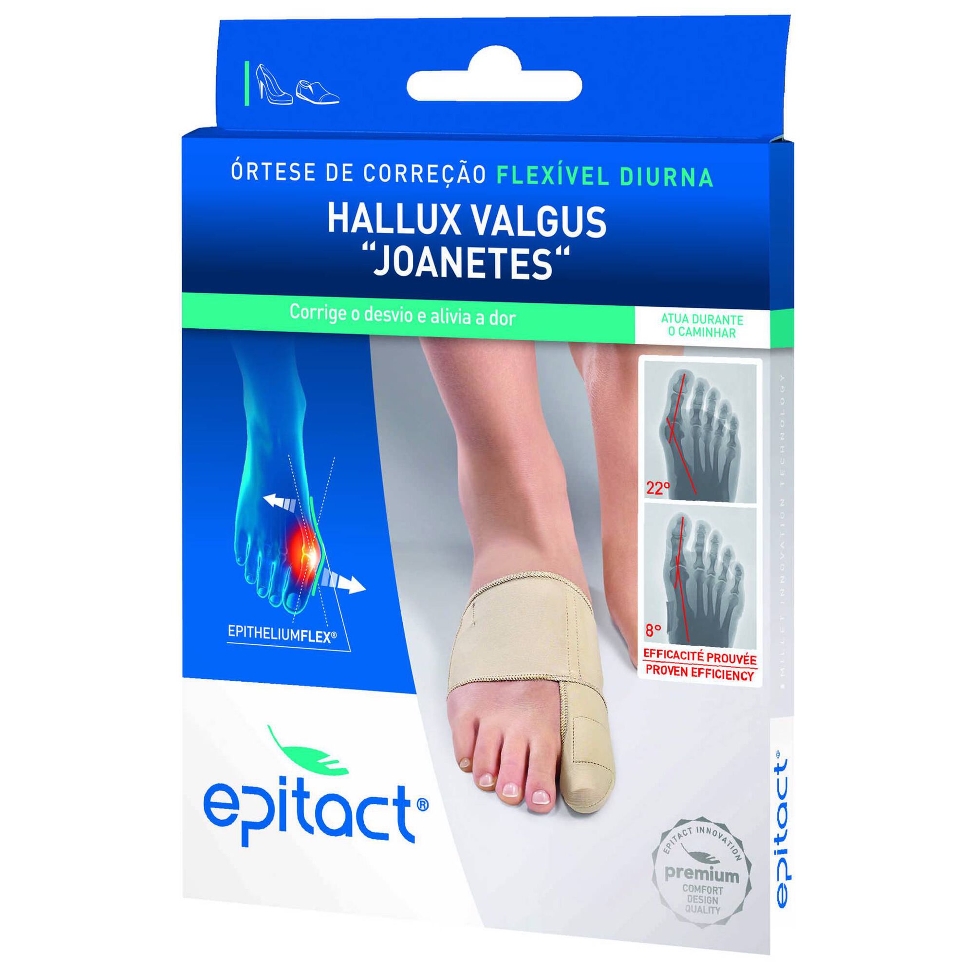 Retarda e corrige a deformação, limitando a evolução do joanete. Alivia as dores articulaares e suprime as dores de contacto.