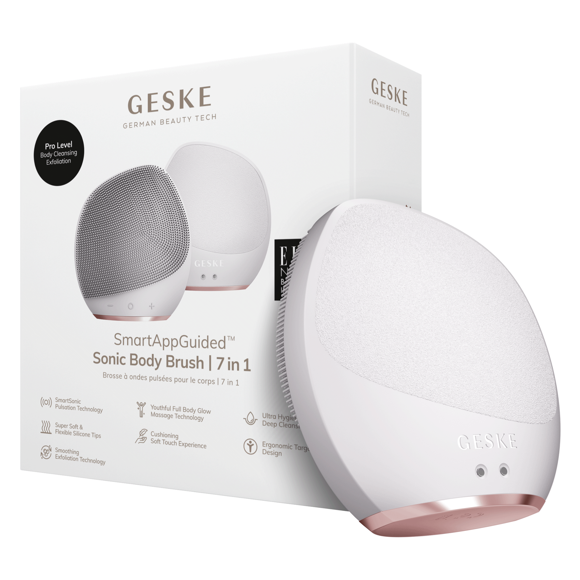 A SmartAppGuided™ Sonic Body Brush & Intensive Exfoliator oferece uma limpeza profunda ultra-higiénica perfeita para a sua rotina diária de cuidados com a pele.