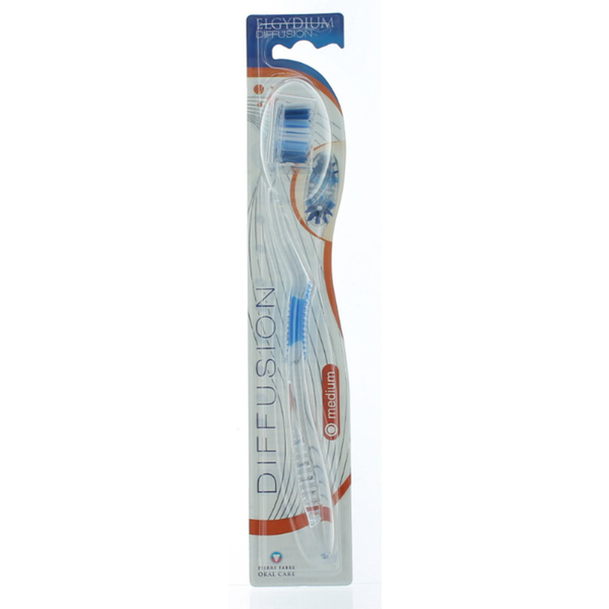 Escova de dentes Diffusion é uma inovação de alta tecnologia (com tecnologia «Anchor-Free Tufting»). Tem um padrão de inserção de cerdas de forma livre, garantindo igualmente um arredondamento perfeito da cabeça da escova para uma escovagem suave dos dentes e gengivas. Com formas perfeitas para a sua boca para proporcionarem uma limpeza completa e eficaz, mesmo nas áreas de difícil acesso.