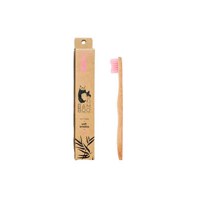 Escovas de dentes rosa para crianças, com cabo em bambu e cerdas macias em nylon 6 sem bpa e em formato ondulado.