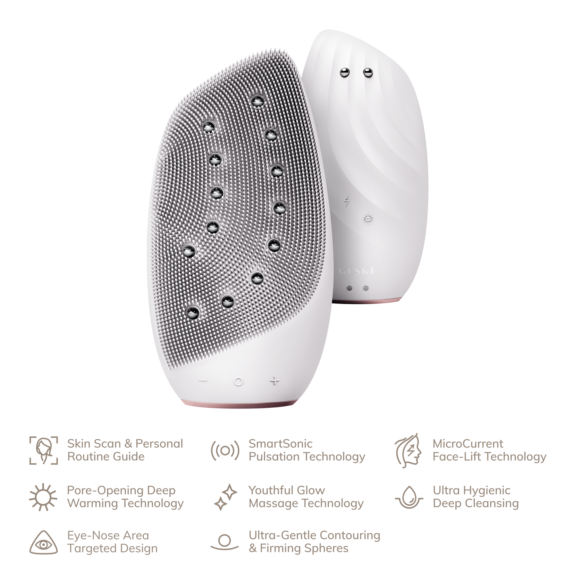 Limpeza facial completa com aquecimento:Molha o rosto e aplica um produto de limpeza GESKE no rosto ou na escova. Os produtos de limpeza GESKE removem suavemente quaisquer impurezas profundas dos poros.