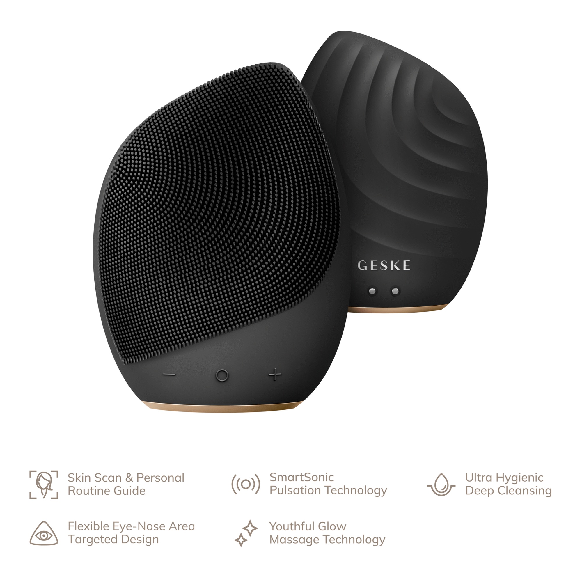 Pele facial perfeitamente limpa, hidratada e bem massajada - este é o presente que mereces todas as noites antes de dormires. E a GESKE está aqui para fazer isso acontecer para ti com a Escova de Limpeza Facial Sonic GESKE 5 em 1 SmartAppGuided™. Repleta de poderosas tecnologias patenteadas, esta escova é o produto de bolso que te ajuda a limpar profundamente a tua pele, prepará-la para absorver os ingredientes de cuidados com a pele, combater os sinais de envelhecimento ou simplesmente fazer com que te sintas bem descansada com uma massagem maravilhosa.