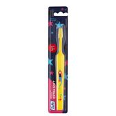Cerdas macias e niveladas, com filamentos arredondados de polyester, garantem uma escovagem totalmente segura e confortável.