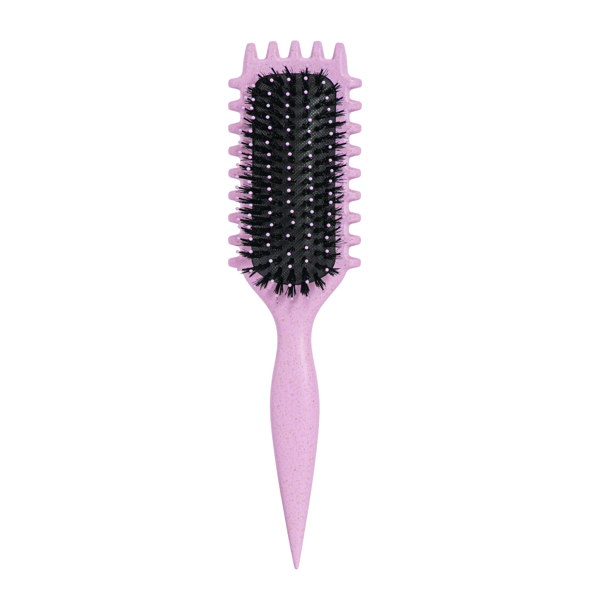 As suas cerdas de javali vegan ajudam a reduzir o frizz, enquanto as fibras flexíveis permitem pentear suavemente, evitando puxões e quebra.