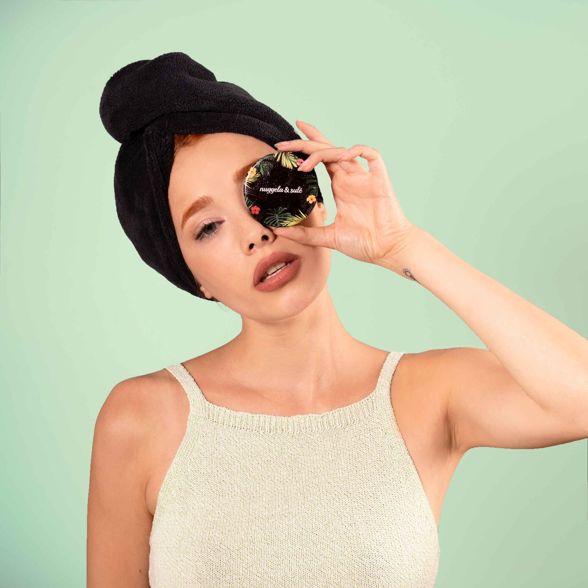 O espelho de bolsa da Nuggela & Sulé é perfeito para levares contigo para qualquer lado para ajudar com retoques de maquilhagem.