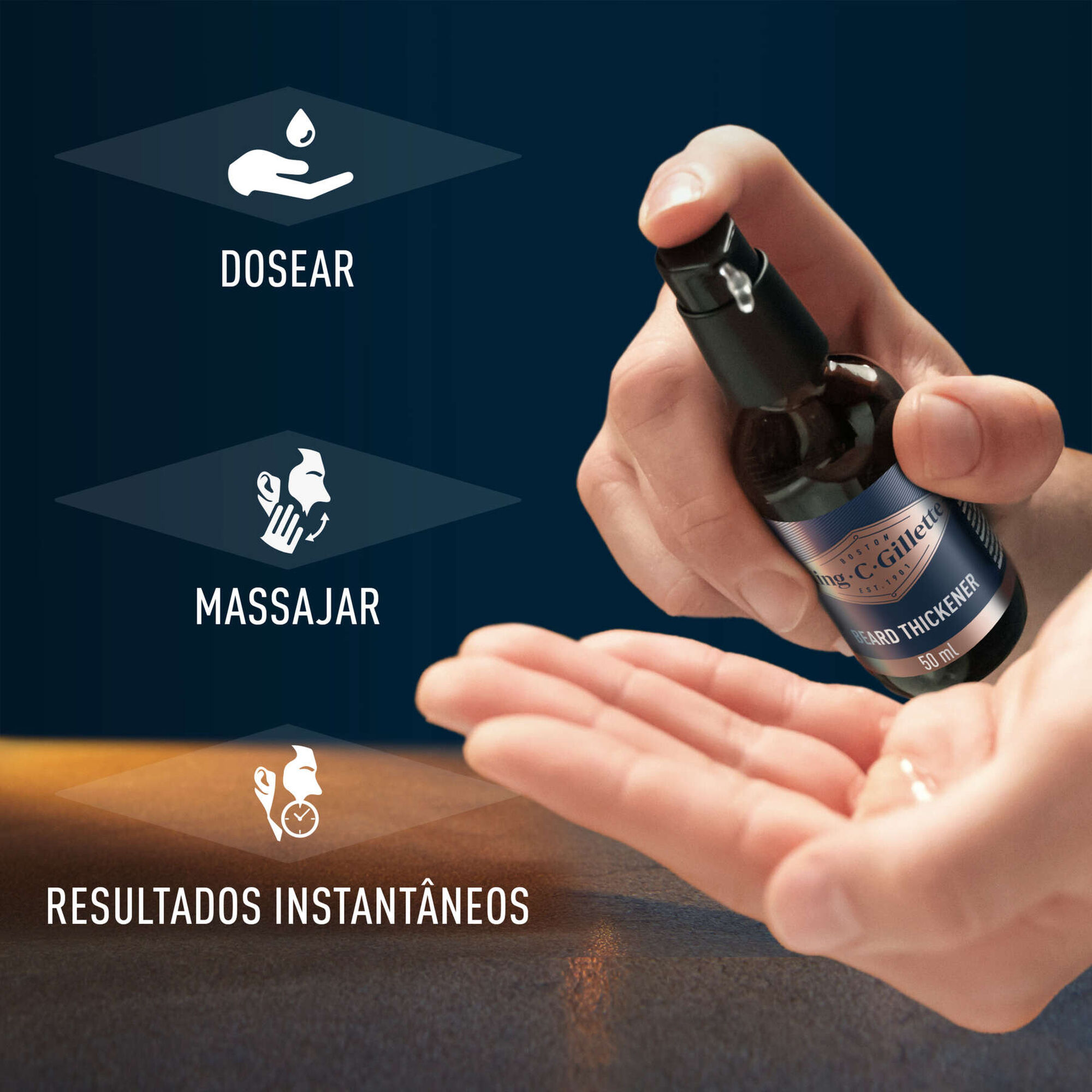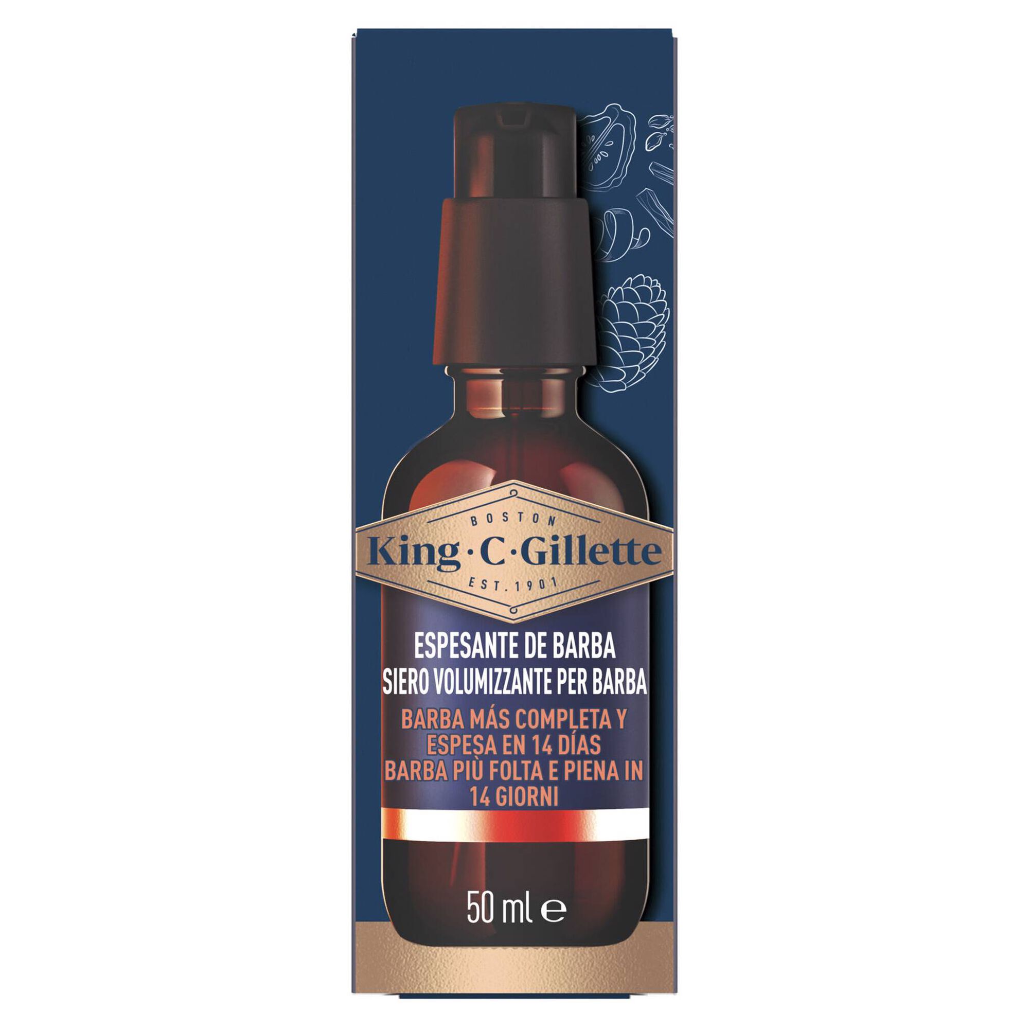 Engrossa os pelos da barba para revesti-los totalmente da raiz às pontas. Também contém cafeína e a fragrância exclusiva King C. Gillette para lhe proporcionar a melhor experiência de cuidado da barba. Porque ter barba é mais do que apenas deixar crescer os pelos.