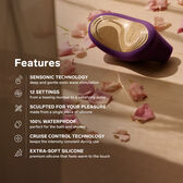 O SONA™ 2 Cruise da LELO cria ondas sónicas e pulsos ainda mais suaves para estimular todo o clitóris, utilizando a tecnologia patenteada Cruise Control. Descobre uma sensação de orgasmo completamente nova com um clímax prolongado graças à abertura maior e mais profunda do SONA™ 2 Cruise. Reserva 1/5 da potência total durante a utilização normal para que quando o SONA™ 2 Cruise for pressionado com força contra o corpo, essa potência extra seja libertada para que não haja redução de intensidade.