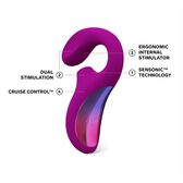 O ENIGMA™ Cruise é o estimulador duplo sónico de última geração que utiliza ondas sónicas para estimular todo o clitóris e vibrações poderosas para uma massagem no ponto G.