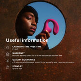O silicone de qualidade superior absorve as ondas sónicas e transmite-as ao clitóris para uma sensação mais profunda, mas mais suave, enquanto a parte interior vibra em sincronia para estimulação interna. Possui também a tecnologia Cruise Control que garante que não há queda de intensidade quando pretendes pressioná-lo com força contra o corpo para uma libertação intensa e profunda. O Cruise Control preserva 20% da potência total do brinquedo no início e liberta-a mais tarde, quando o motor começa a perder potência, para que não sintas a redução da intensidade da estimulação. Não é uma configuração extra, mas sim um modo automático que torna a experiência descomplicada. Agora, começarás a ter um orgasmo combinado atrás do outro, evoluindo para um novo nível de bem-estar sexual.