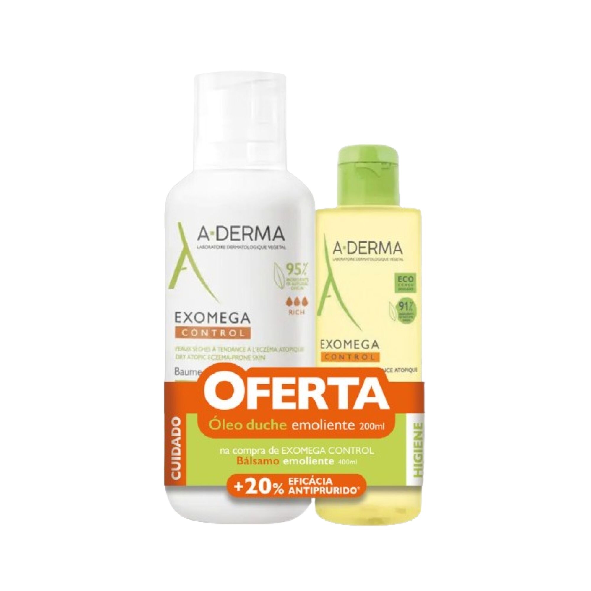 Coffret composto por: Bálsamo Emoliente Exomega Control 400 ml + Óleo de Duche Emoliente Antiprurido EXOMEGA CONTROL 200 ml.