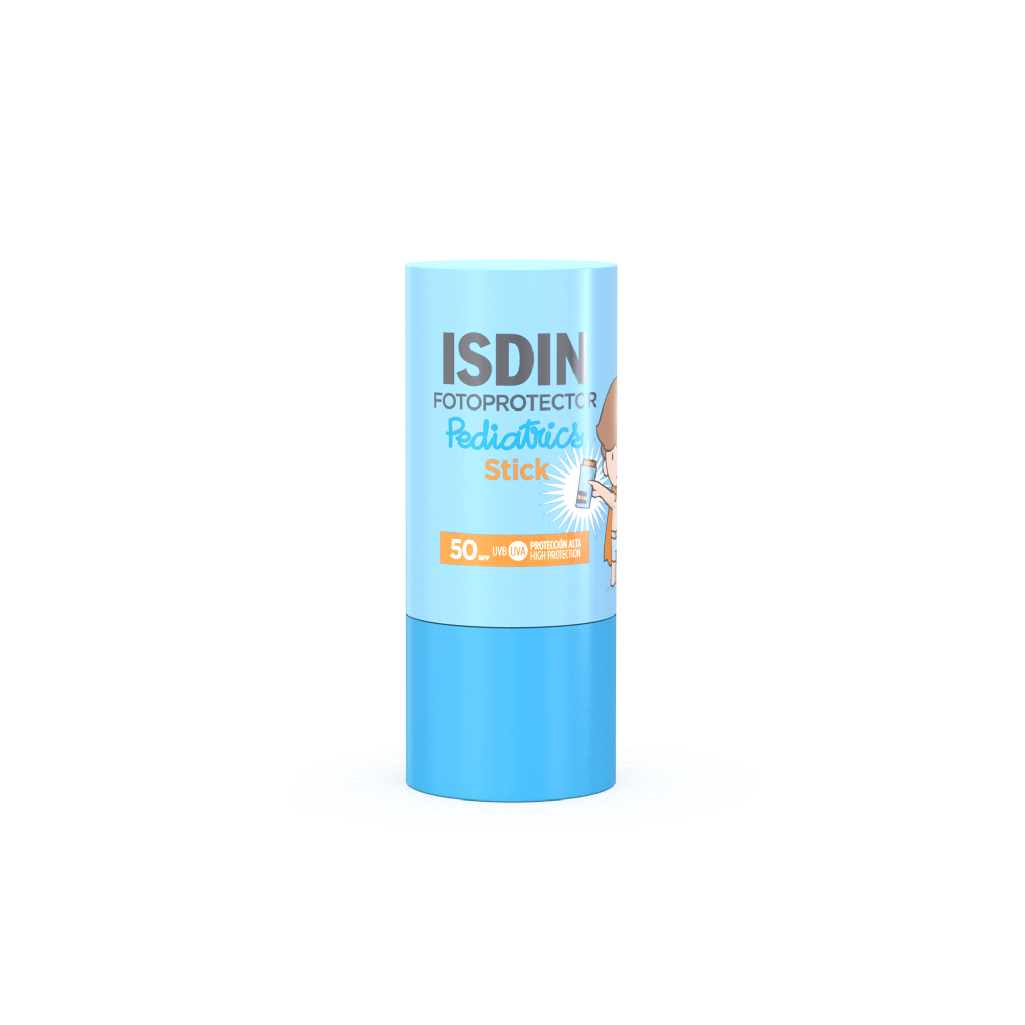 Protetor solar em stick, especialmente formulado para a pele sensível das crianças.