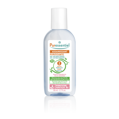 Gel Antibacteriano para peles sensíveis que elimina mais de 99,9% das bactérias e dos vírus.