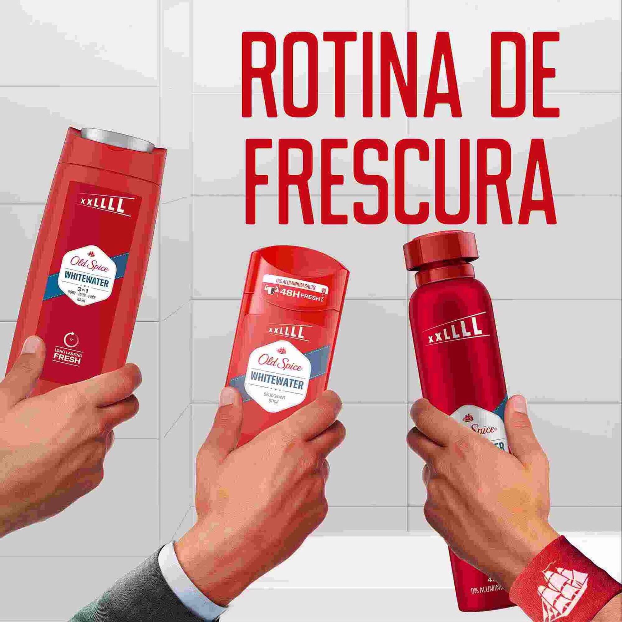 O Gel de Duche e Champô Old Spice Whitewater tem fragrância com Âmbar, Sândalo e Notas Cítricas torna-te inesquecível, passarás a ser o centro do universo.