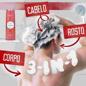 A sua fórmula 3 em 1, para a lavagem do corpo, cabelo e cara tem uma espuma suave para uma limpeza profunda e uma frescura duradoura.