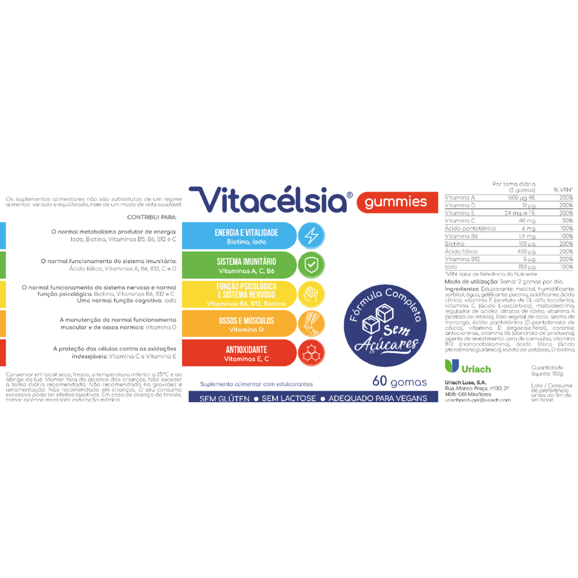 Vitacélsia Gummies é um multivitaminico com uma fórmula completa num formato saboroso e sem açúcares.